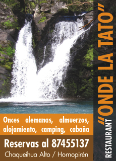 Onces, almuerzos, cascadas, camping Onde La Tato – Chaqueihua – Hornopirén